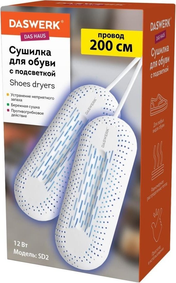 | Информация | ??Текст описания составлен при помощи искусственного интеллекта. - Сушилка для обуви Daswerk SD2 456195 — это идеальное решение для быстрого и эффективного высушивания вашей обуви. Благодаря встроенному таймеру, вы сможете легко настроить время работы устройства, что делает его использование максимально удобным. - Уникальный вставной тип сушилки позволяет легко помещать её в любую обувь, обеспечивая равномерное распределение тепла. Максимальная температура в 80 °C гарантирует, что ваша обувь высохнет быстро, не повреждая при этом материал. - Изготовленная из качественного пластика, сушилка отличается прочностью и долговечностью. Мощность в 12 Вт обеспечивает эффективную работу устройства, позволяя вам забыть о неприятном запахе и сырости в обуви. - Не забывайте, что правильный уход за обувью продлевает её срок службы, и сушилка Daswerk SD2 456195 станет вашим надежным помощником в этом процессе. |