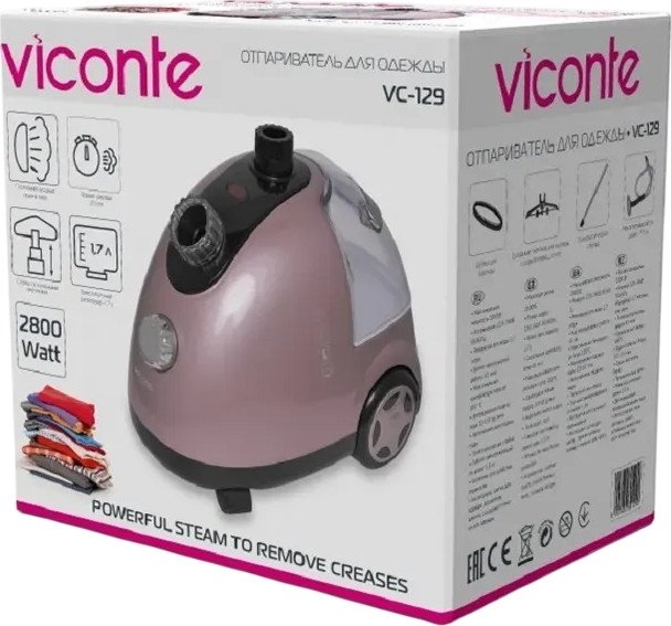 | Информация | -Отпариватель Viconte VC-129 предназначен для эффективного ухода за одеждой в домашних условиях. Устройство быстро нагревается – до готовности к работе требуется не более 1 минуты, что позволяет оперативно справляться с глажкой даже при нехватке времени. С помощью вертикального отпаривания вы сможете привести в порядок любые ткани, включая деликатные материалы, не боясь их повредить. -Мощность прибора составляет 2800 Вт, что обеспечивает интенсивную и стабильную подачу пара на уровне 42 г/мин. Благодаря такой производительности отпариватель подходит для устранения даже глубоких складок и отпаривания плотных тканей. Вместительный съемный резервуар для воды объемом 1.7 литра позволяет работать продолжительное время без необходимости частого долива воды. -Viconte VC-129 оснащен механическим управлением, индикацией включения, готовности к работе и уровня воды, что делает эксплуатацию максимально простой и удобной. Для дополнительного комфорта предусмотрена регулировка температуры, регулировка по высоте, а также колесики для легкого перемещения устройства. Длина шланга и шнура питания по 1.5 метра обеспечивают свободу движений во время глажки. -Корпус выполнен из прочного пластика, а подошва отпаривателя – из керамики, что гарантирует долгий срок службы устройства. Модель выполнена в стильном розовом цвете и отличается компактными габаритами (36.5*26.5*31.5 см) и небольшим весом (3.8 кг), что облегчает хранение и транспортировку. |