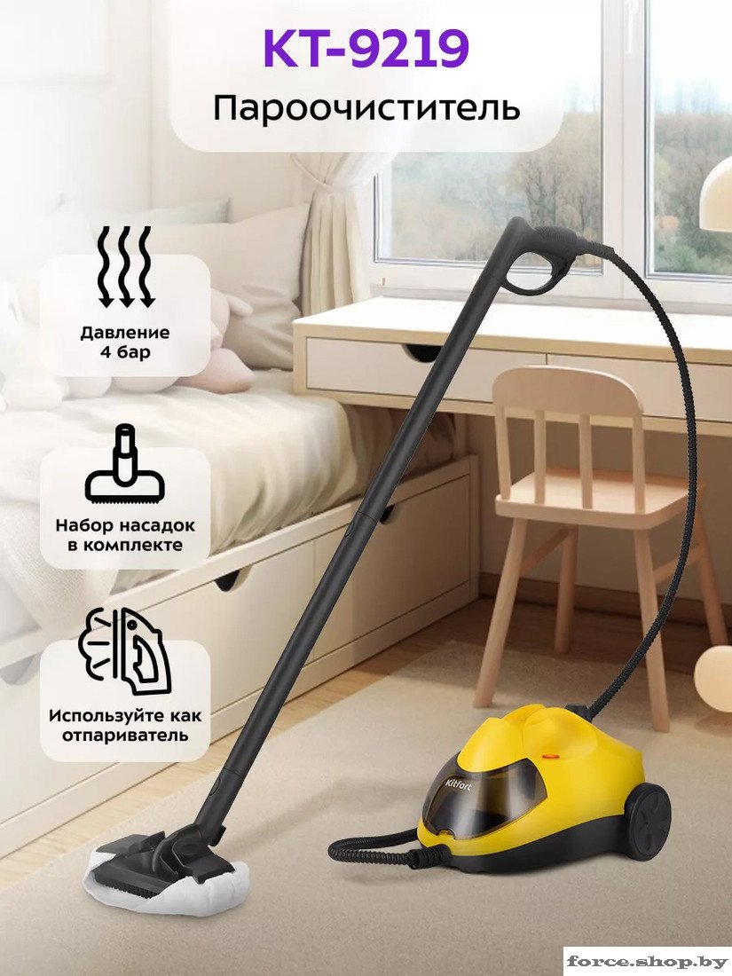 | Информация | - Пароочиститель — многофункциональный аппарат, способный заменить паровую швабру, дезинфектор‚ стеклоочиститель и отпариватель для тканей. Используя струю горячего пара, пароочиститель отлично очищает поверхности и обеспечивает деликатную глажку вещей.###BR######BR###- Индикатор нагрева горит, когда. включен нагрев бойлера. Когда давление пара достигает номинального значения, нагрев выключается, а индикатор нагрева гаснет. При использовании пароочистителя нагреватель периодически включается, чтобы восполнить расход пара###BR######BR###- В комплекте с пароочистителем идут мерный стакан и воронка для удобного добавления воды в бойлер. Ёмкость составляет 1,5 л.###BR######BR###- Струйная насадка может использоваться для очистки углов, плинтусов, щелей между плитками. Насадка для отпаривания используется для отпаривания одежды и чистки мягкой мебели. Круглые нейлоновые щетки используются для удаления стойких загрязнений.###BR######BR###- Кнопка подачи пара на паровом пистолете может находиться в трех положениях: заблокирована, ручная подача пара, непрерывная подача пара. Вы можете пользоваться пароочистителем КТ-9219 одной рукой, включив непрерывную подачу пара.###BR######BR###- Щётка для пола по бокам оснащена зажимами для закрепления тряпки. Вы можете использовать тряпки из комплекта или любые другие из натуральных волокон.###BR######BR###- На корпусе пароочистителя есть ручка для переноса. Колеса позволяют с лёгкостью перемещать пароочиститель не поднимая его. Пароочиститель очищает поверхности от пятен при помощи горячего пара, а также дезинфицирует.###BR######BR###- В комплект, помимо различных насадок, входят также насадка для пола, тряпки, удлинительные трубки, мерный стакан и воронка, что делает КТ-9219 максимально универсальным устройством для очистки, глажки, дезинфекции самых разных поверхностей! |