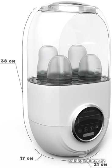 | Информация | Многофункциональный стерилизатор-подогреватель-сушка для бутылочек и детских принадлежностей 4-в-1 KUNDER может не только стерилизовать детскую посуду, подогревать питание, но также позволяет готовить на пару и размораживать. Универсальная модель совместима со всеми детскими бутылочками. Предустановленные программы стерилизации 20 мин., сушки – 40 мин., температурные режимы подогрева питания предусмотрены от 30 до 90 С. После нагрева до заданной температуры устройство поддерживает постоянную температуру в течение 24 часов. Паровой стерилизатор-подогреватель KNDR-21 обеспечивает равномерный прогрев. Диапазон времени приготовления на пару 1 - 20 мин., автоматически установленная температура 100 С. После завершения режима устройство отключается автоматически. При недостаточном количестве воды в емкости устройство отключится автоматически. Стерилизатор-подогреватель оснащен сенсорной светодиодной панелью, которая значительно упрощает проверку времени и температуры. А таймер обратного отсчета позволяет отслеживать остаточное время в режимах. электронный стерилизатор; стерилизатор пароварка; электрический стерилизатор 4 в 1. Комплектация: подставка; подогреватель бутылочек; мерный стакан; стерилизатор детский/ Универсальная модель совместима со всеми детскими бутылочками. |