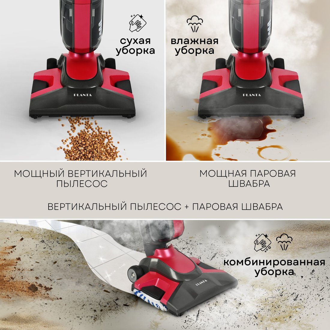 | Информация | - Вертикальный паровой пылесос PLANTA PL-SC301 - это настоящая находка для тех, кто ценит комфорт и чистоту в доме. Представьте себе паровой пылесос, который способен делать не только сухую уборку, но и влажную. Мощный горячий пар способен не только удалить даже самые сложные загрязнения, он также дезинфицирует поверхность, убивая микробы и вирусы. Вертикальный пылесос PLANTA сочетает в себе несколько приборов: пылесос, паровая швабра, пароочиститель с насадками для различных целей. Таким образом пылесос превращается в компактное устройство для многофункциональных задач. - Пылесос с паром работает в 3х режимах: всасывание пыли и мусора, чистка паром или одновременно и всасывание пыли, и обработка паром. Используя режим «ручной пароочиститель», Вы можете убрать все поверхности в доме: от плитки в ванной, до кухонной плиты; устройство так же можно использовать и как отпариватель, устраняя складки с одежды и штор. Вертикальный пылесос с функцией пароочистителя имеет 3 уровня подачи пара: интенсивность выхода пара варьируется от 15 до 25 г/мин - Вы с легкостью подберете режим под Ваши нужды. - В комплекте поставки есть семь дополнительных насадок, чтобы удовлетворить все ваши запросы и потребности при уборке. Эта удивительная "швабра" оснащена длинным шнуром в 5 метров, что дает возможность свободно двигаться по комнатам без переключения розеток. А емкость пылесборника равна 400 мл - достаточно большая, чтобы не беспокоиться о частых перерывах для очистки контейнера. Нельзя не отметить мощность этой волшебной паровой швабры - 1200 Вт и пылесоса - 600 Вт. - Важно отметить, что этот вертикальный паровой пылесос оснащен двойной системой фильтации – это надежный циклонный и НЕРА-фильтр, которые эффективно задерживают мельчайшие частицы и аллергены. Поэтому вы можете быть уверены в качественной очистке вашего дома. Управлять пылесосом легко благодаря эргономичной ручке и его маневренности. Также благодаря специально конструкции щетки и колесиков, пылесос легко доберется до самых труднодоступных мест. - Хранить вертикальный пылесос также не составит труда: благодаря специальному набору для пристенного хранения в комплекте и возможности вертикальной парковки устройства. - PLANTA PL-SC301 - это не просто пылесос, это надежный помощник для вашей семьи, который сделает вашу жизнь легче и комфортнее. |