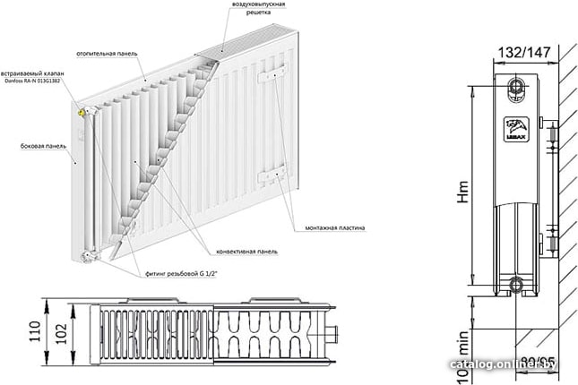| Информация | Тип 22. С двумя рядами панелей по глубине с двумя рядами оребрения, приваренного к каждой панели с внутренней стороны, с воздуховыпускной решёткой и боковыми стенками. Комплектуется встраиваемым клапаном Danfoss RA-N 013G1382. |