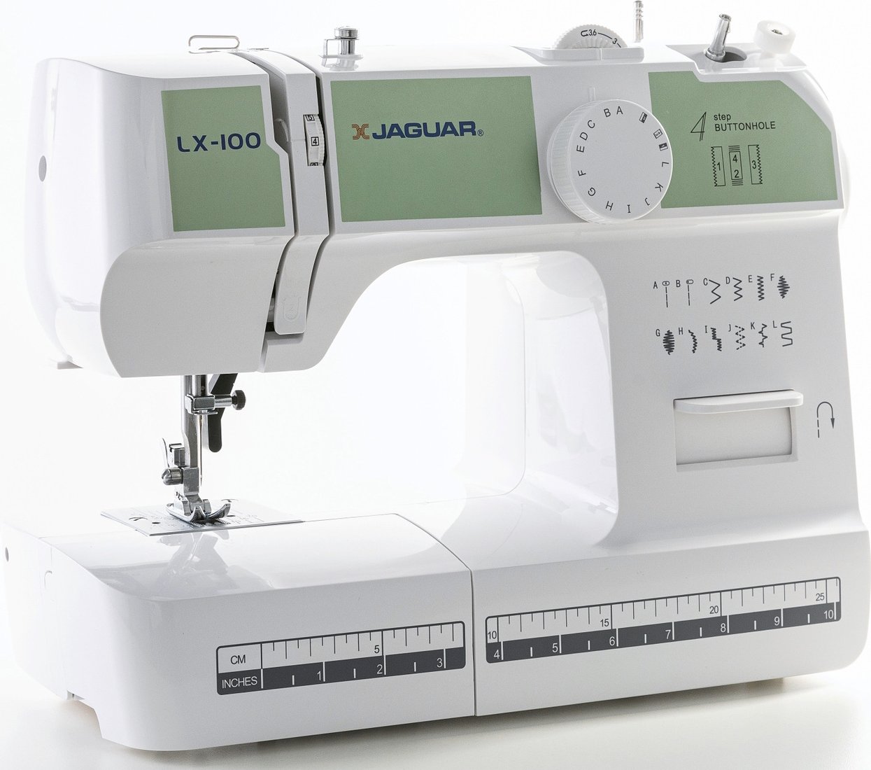 | Информация | - Jaguar LX-100 - это компактная электромеханическая швейная машина, разработанная для вашего максимального комфорта. Она построена на прочной металлической основе с использованием надежных металлических компонентов и оснащена проверенным временем вертикальным качающимся челноком.###BR######BR###- Машина выполняет все основные строчки, необходимые для работы: прямые, зигзаги, эластичные, потайные, имитацию оверлочного шва и шитье двойной иглой. С ее помощью вы также сможете создать аккуратную петлю и пришить пуговицу.###BR######BR###- Яркое светодиодное освещение рабочей зоны позволяет экономить энергию и избавляет от необходимости замены лампочки в неподходящий момент. На корпусе машины предусмотрен обрезчик нити для дополнительного удобства. - |
