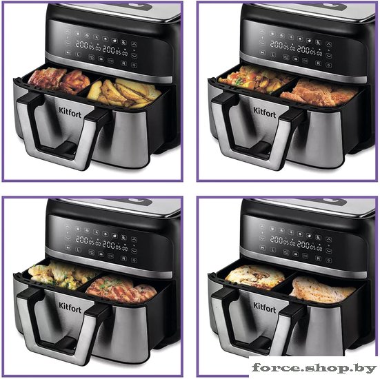 | Информация | Жарка, запекание, выпечка – всё на ваш вкус!###BR###Современный аэрогриль КТ-2247 с 2 раздельными нагревателями интересен стильным дизайном, а также позволяет готовить большинство продуктов без добавления масла, а также может использоваться как сушилка для фруктов и овощей.###BR######BR###Готовьте одновременно 2 разных блюда!###BR###Главное преимущество КТ-2247 - наличие 2х нагревателей. Разделителем, который идёт в комплекте, вы можете поделить поддон на 2 части и готовить 2 разных блюда одновременно, установив для каждого свои настройки t и таймера. Например, мясо и гарнир.###BR######BR###Равномерное приготовление###BR###Продукты готовятся на решётках, которые вставлены в поддон. Благодаря системе циркуляции горячего воздуха, продукты обжариваются равномерно со всех сторон, получаясь нежными внутри и с хрустящей корочкой снаружи.###BR######BR###Индивидуальная настройка времени и температуры для каждого отсека###BR###Прибор оснащён сенсорным управлением, имеет 6 программ, синхронизацию приготовления и подогрев. Можно установить таймер до 60 мин и t° до 200°C для каждого нагревателя. На дисплее отображаются заданные параметры и какие нагреватели работают.###BR######BR###Для удобства приготовления###BR###Продукты готовятся на специальных решётках, установленных в поддон. И решётки, и поддон с антипригарным покрытием. Все части, в том числе и разделитель, легко разбираются и моются. Ручка поддона не нагревается, за неё удобно держаться.###BR######BR###2 в 1: аэрогриль и сушилка для фруктов и овощей###BR###В аэрогриле есть специальная программа для сушки овощей и фруктов с таймером от 1 до 24 часов и температурой от 40 до 80 градусов, что идеально подходит для этой задачи. |