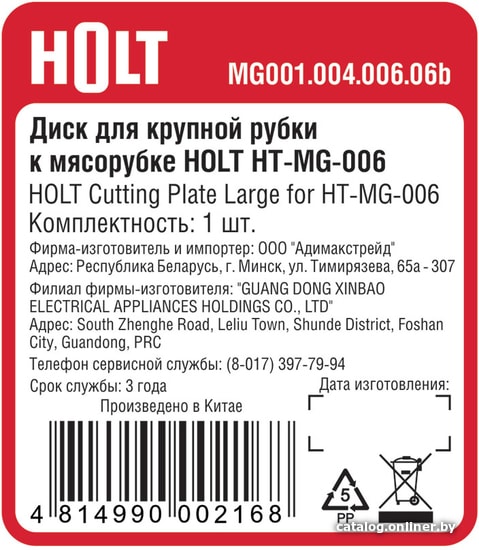 | Тип | формовочный диск (для крупной рубки) |