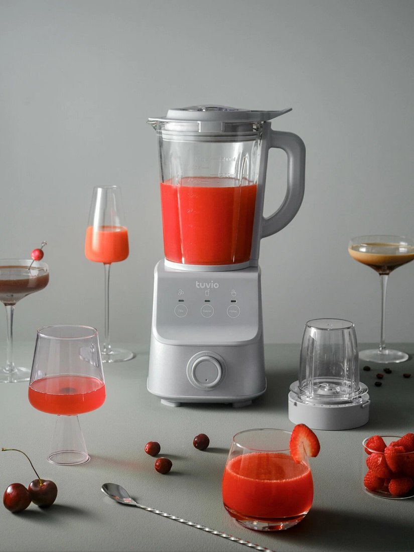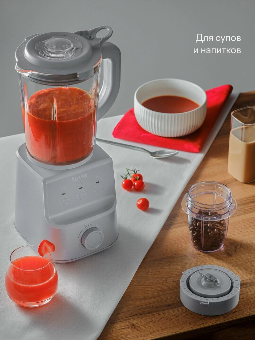 | Информация | Стационарный блендер Tuvio с 3 автоматическими программами подходит для приготовления смузи, крем-супов, помола кофе и колки льда. С мощностью 1800 Вт устройство легко справится даже с твёрдыми продуктами и будет стабильно работать на максимальных оборотах. Большой диапазон скоростей поможет подобрать оптимальный режим под любые задачи. На минимальной скорости можно быстро измельчить продукты, максимальная подойдёт для взбивания, а в импульсном режиме легко добиться однородной текстуры. В стеклянном кувшине объёмом 1,7 л (и полезным объёмом 1,5 л) можно приготовить сразу несколько порций напитка или супа, а с кофемолкой из комплекта — перемолоть зёрна, орехи и специи. За блендером просто ухаживать. Съёмные ножи и кувшин можно мыть в посудомоечной машине. Функция самоочистки подойдёт для ополаскивания блендера и удаления лёгких загрязнений. Двигатель блендера защищён от перегрузок и перегрева: с помощью специальных датчиков блендер поймет, когда нужно временно остановиться — это поможет использовать его максимально долго без поломок. |