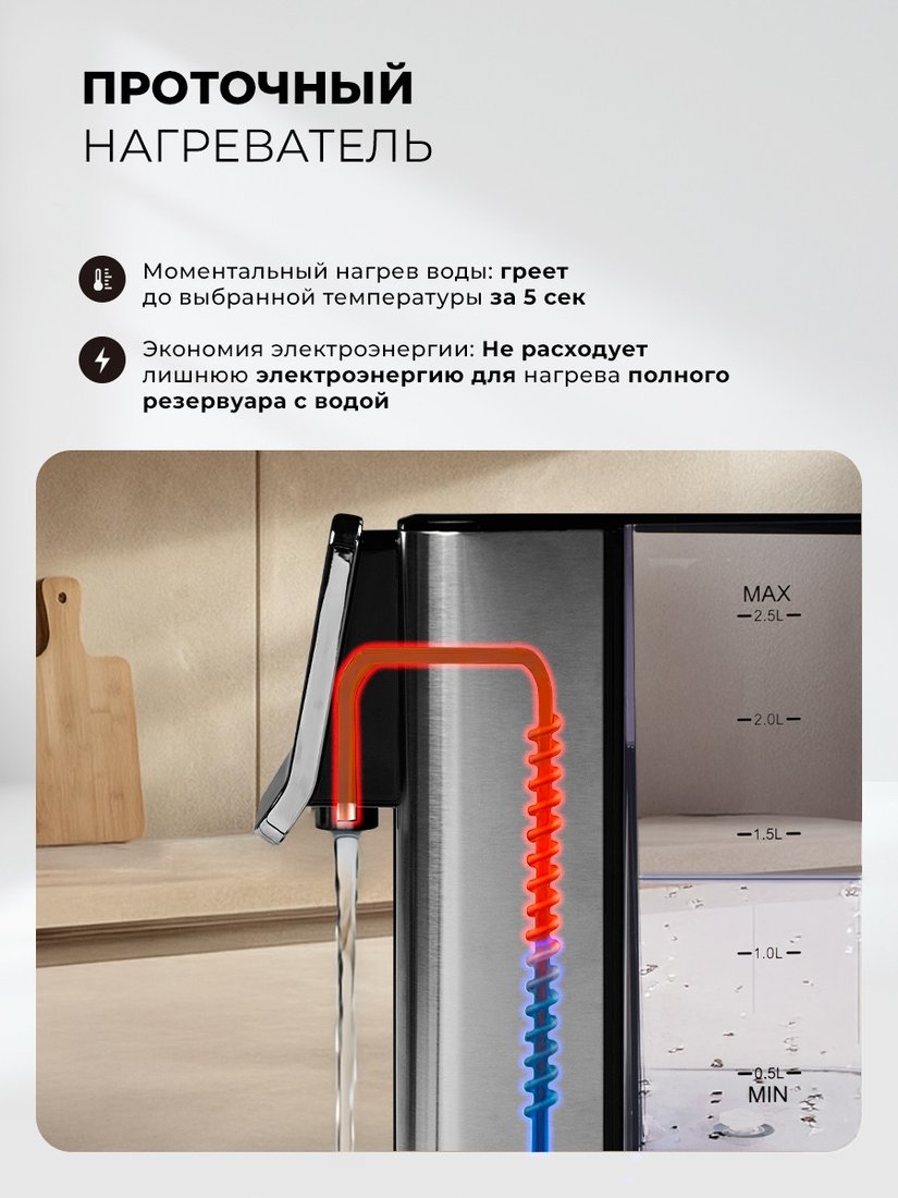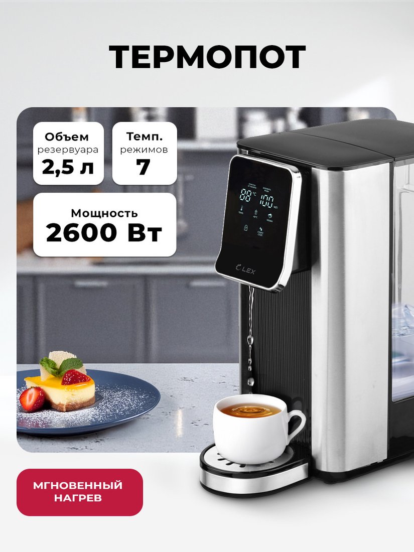 | Информация | ??Текст описания составлен при помощи искусственного интеллекта. - Диспенсер LEX LXTP 3621 — это идеальное решение для тех, кто ценит комфорт и современный дизайн. Корпус из металла и пластика обеспечивает долговечность и стильный внешний вид, который впишется в любой интерьер. - Удобное сенсорное управление позволяет легко настраивать параметры работы устройства. Вы сможете быстро выбрать нужный режим и наслаждаться горячей или холодной водой в любое время. - Благодаря электрическому насосу, процесс розлива воды становится максимально простым и быстрым. Вам больше не придется тратить время на ручное наливание — просто нажмите кнопку! - Диспенсер оснащен вращающейся подставкой, что делает его использование еще более удобным. Вы сможете легко наливать воду, не беспокоясь о том, как расположить устройство. - Обратите внимание на индикацию температуры и внешний уровень воды — это поможет вам всегда быть в курсе состояния диспенсера и избежать неприятных ситуаций. - С объемом 2.5 литра и мощностью 2600 Вт, LEX LXTP 3621 справится с любыми задачами, обеспечивая вас горячей или холодной водой в нужном объеме. Терморегулятор с 7 режимами позволяет настроить идеальную температуру для вашего напитка. - Компактные размеры (длина 282 мм, ширина 150 мм, высота 302 мм) делают этот диспенсер отличным выбором для кухни, офиса или любого другого пространства. |