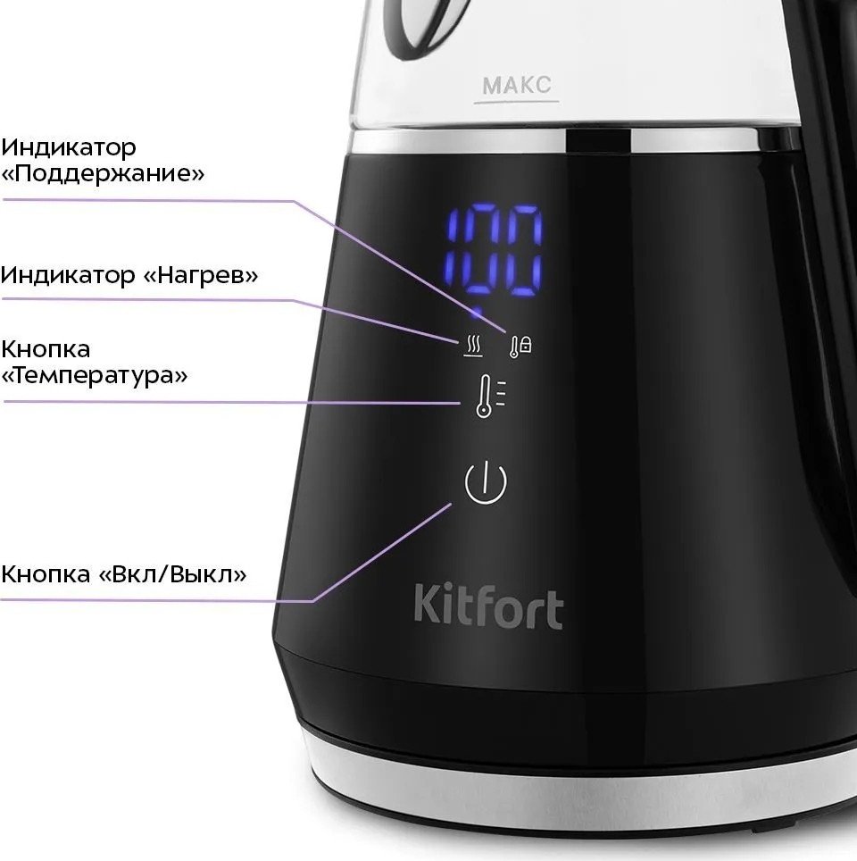 | Информация | - Электрический чайник Kitfort KT-6696 с электронным терморегулятором способен не только вскипятить воду, но и нагреть её до 40, 70, 80 и 90 °C. Это особенно удобно для заваривания различных сортов чая. - Кроме того, чайник имеет функцию поддержания температуры в течение 2 часов, что позволяет наслаждаться горячим напитком в любое время. - Обратите внимание на его стильный дизайн и высокое качество материалов, которые делают использование чайника приятным и безопасным. |