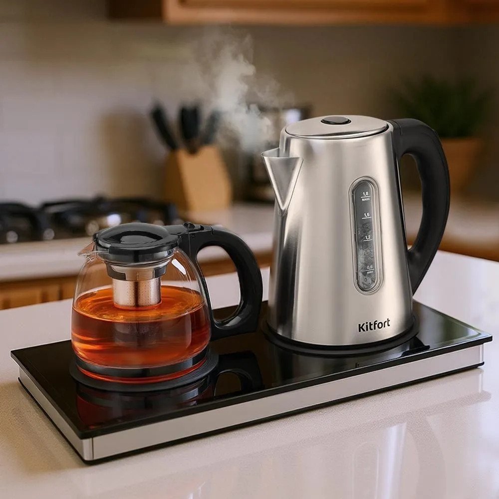 | Информация | Идеален для чаепития! Чайный набор КТ-6677 представляет собой идеальное сочетание функциональности и удобства для настоящих ценителей чая. В наборе вы найдёте обычный и заварочный чайники, которые позволят вам наслаждаться чашечкой свежего и ароматного чая без лишних хлопот. Съёмный заварочный фильтр Заварочный чайник изготовлен из термостойкого стекла и имеет съёмный фильтр для чая или кофе. В месте установки заварочного чайника на базу находится платформа с подогревом, благодаря которой готовый напиток остаётся тёплым. Удобные чайники Корпус чайника выполнен из нержавеющей стали. Крышка чайника выполнена из нержавеющей стали и пластика. Мерная шкала с отметками для уровня воды располагается на корпусе. Ручка у обоих чайников пластиковая, что позволяет комфортно держать чайник в руке. Простое управление Переключатель на ручке чайника включает и выключает кипячение воды. При работе загорается индикатор работы. На платформе расположен переключатель, включающий подогрев. Эта опция позволит вам поддерживать температура напитка. Всё для вашего комфорта! Центральный контакт для чайника на базе даёт возможность ставить чайник на неё в любом положении, обеспечивая вращение на 360°. Полный чайник закипает примерно за 6 минут, а само устройство имеет защиту от перегрева и защиту от включения без воды. |
