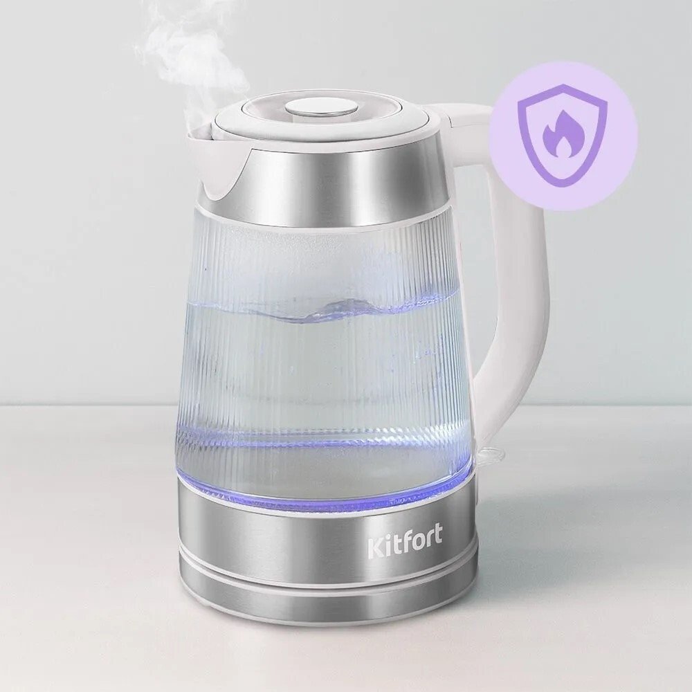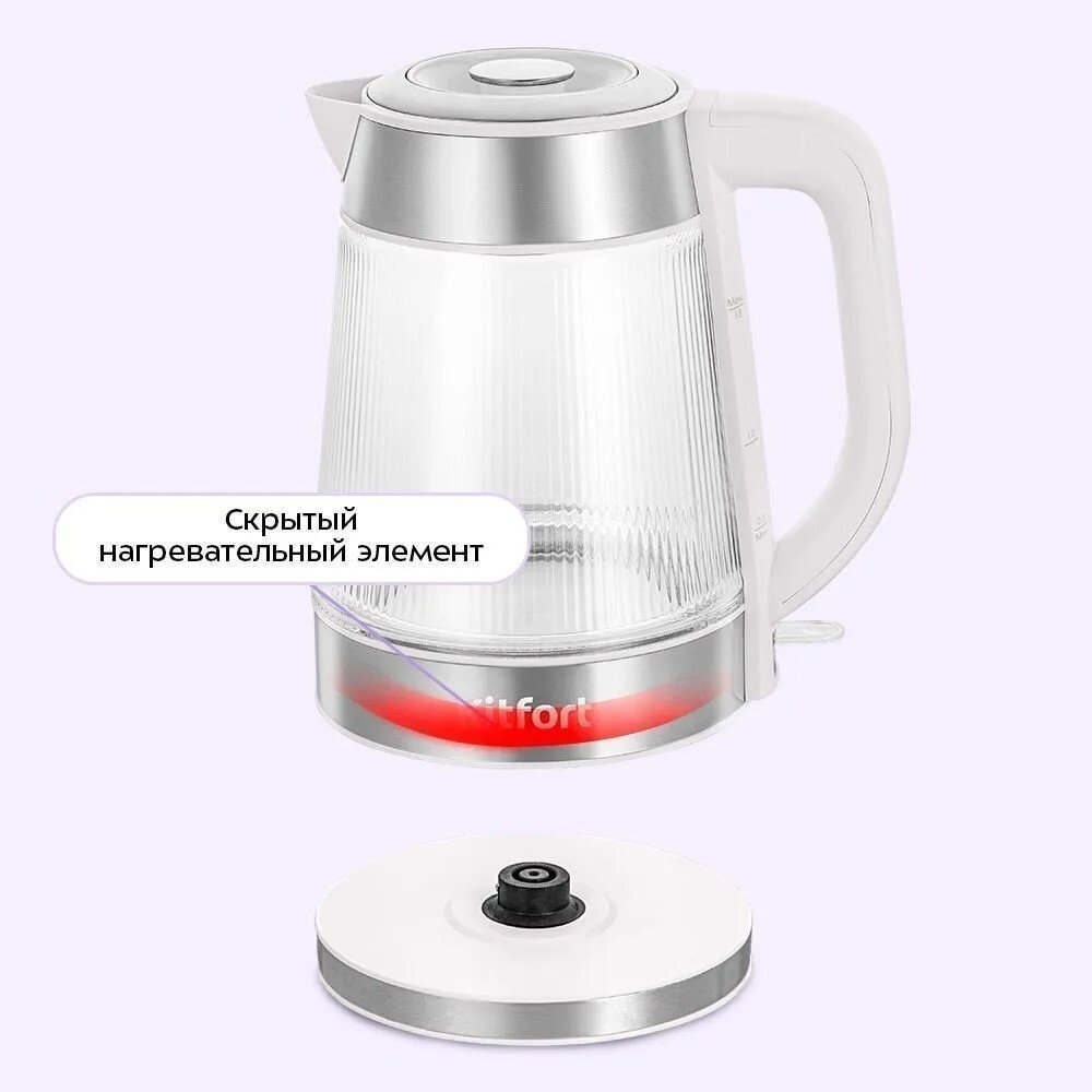 | Информация | - Электрический чайник Kitfort КТ-8709 — это современное и стильное устройство для быстрого кипячения воды объемом 1.8 литра, которое подойдет для дома, офиса или дачи. Дизайн чайника легко впишется в любой интерьер благодаря сочетанию стекла, пластика и элементов из нержавеющей стали. Мощность в 2200 Вт обеспечивает быстрый нагрев воды, а прозрачный корпус позволяет легко контролировать уровень жидкости. - Чайник оснащен скрытым нагревательным элементом, защищенным металлической пластиной из нержавеющей стали, что предотвращает образование накипи и облегчает уход за устройством. Система безопасности включает автоматическое отключение при закипании и защиту от перегрева, что делает эксплуатацию прибора надежной и продлевает его срок службы. - Для дополнительного удобства предусмотрена подставка с центральным контактом, обеспечивающая вращение на 360 градусов, а также отсек для хранения шнура. Пластиковая ручка не нагревается, что исключает риск ожога, а съемная крышка облегчает наполнение и чистку чайника. - Корпус из стекла не только придает чайнику современный внешний вид, но и делает уровень воды визуально доступным. Компактные габариты, легкий вес и простота управления делают Kitfort КТ-8709 отличным выбором для ежедневного использования. |