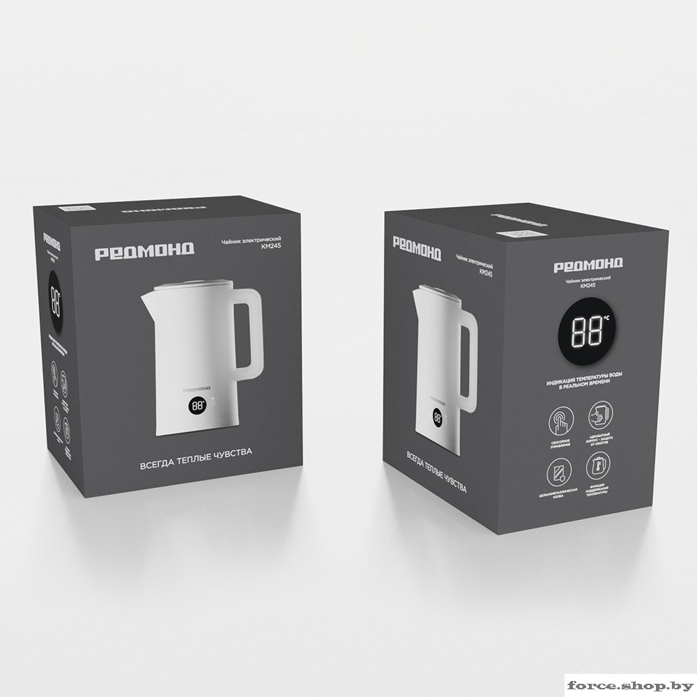 | Информация | - РЕДМОНД KM245 — это электрический чайник с сенсорным управлением и адиабатным корпусом, который идеально подходит для тех, кто ценит надежность. Контактная группа Strix® гарантирует долгий срок службы до 10 лет, а цельнометаллическая колба устойчива к накипи и коррозии. KM245 предлагает 5 температурных режимов для идеального приготовления чая, кофе и других горячих напитков.###BR######BR###- Сенсорное управление делает использование чайника простым и удобным. Легкое прикосновение позволяет управлять устройством без лишних кнопок и надписей, что особенно понравится любителям минимализма.###BR######BR###- С KM245 вы сможете готовить напитки при идеальной температуре. Выберите один из 5 режимов нагрева: 40, 55, 80, 90 и 100°C, чтобы насладиться любимыми горячими напитками.###BR######BR###- Адиабатный корпус сохраняет тепло, как термос, и благодаря двойным стенкам внешний корпус всегда остается комфортной температуры, что исключает риск обжечься.###BR######BR###- Колба из нержавеющей стали обеспечивает долговечность, устойчива к коррозии и быстро нагревается. Она не впитывает запахи и не выделяет вредных веществ, поэтому ваша вода всегда будет чистой и без посторонних привкусов.###BR######BR###- Функция поддержания температуры позволяет воде оставаться горячей до 12 часов. KM245 автоматически перейдет в режим подогрева и будет поддерживать выбранную температуру. При необходимости автоподогрев можно отключить.###BR######BR###- Надежная контактная группа от компании Strix®, ведущего производителя из Великобритании, обеспечивает безопасность и долговечность работы чайника. |
