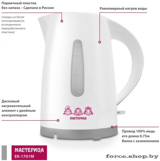 Электрочайник Мастерица EK-1701M (белый/серый)