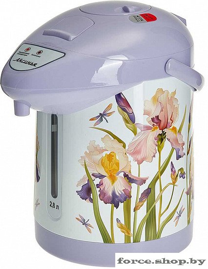 | Информация | Чайник-термос электрический предназначен для нагрева воды и поддержания ее температуры в бытовых и аналогичных условиях###BR###Поворот корпуса на базе на на 360°###BR###Внутренняя ёмкость из нержавеющей стали###BR###Шкала уровня воды###BR###Световые индикаторы работы###BR###Съёмная крышка для удобства очистки###BR###Съёмный шнур электропитания###BR###Ручной способ разлива воды###BR###Режим поддержания температуры воды###BR###Блокировка ручной помпы от случайного нажатия###BR###Блокировка включения без воды###BR###Автоматическое отключение при недостаточном количестве воды###BR###Защита от перегрева (срабатывание при 105?C)###BR###Упаковка: цветная коробка |