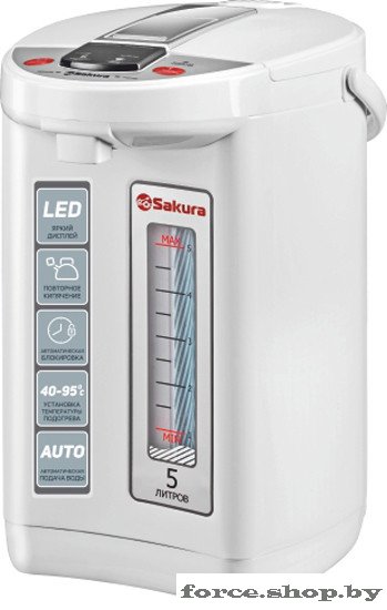 | Информация | Термопот 5.0 л, 1200 Вт, LED дисплей и световые индикаторы, колба из нержавеющей стали #304, повторное кипячение, поддержание температуры, 6 температурных режимов (комнатная температура, 40, 55, 65, 85, 95С), 2 сенсорные кнопки (блокировка и подача воды), автоматическая блокировка, подсветка шкалы, подача воды кнопкой на панели и нажатием чашки, двойная защита от выкипания и перегрева. |