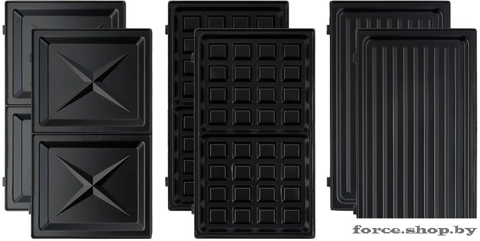 | Комплектация | ГрильСменные панели:- для гриля (установлены в устройство) - 2 шт- для сэндвичей - 2 шт- для вафель - 2 штРуководство по эксплуатации |