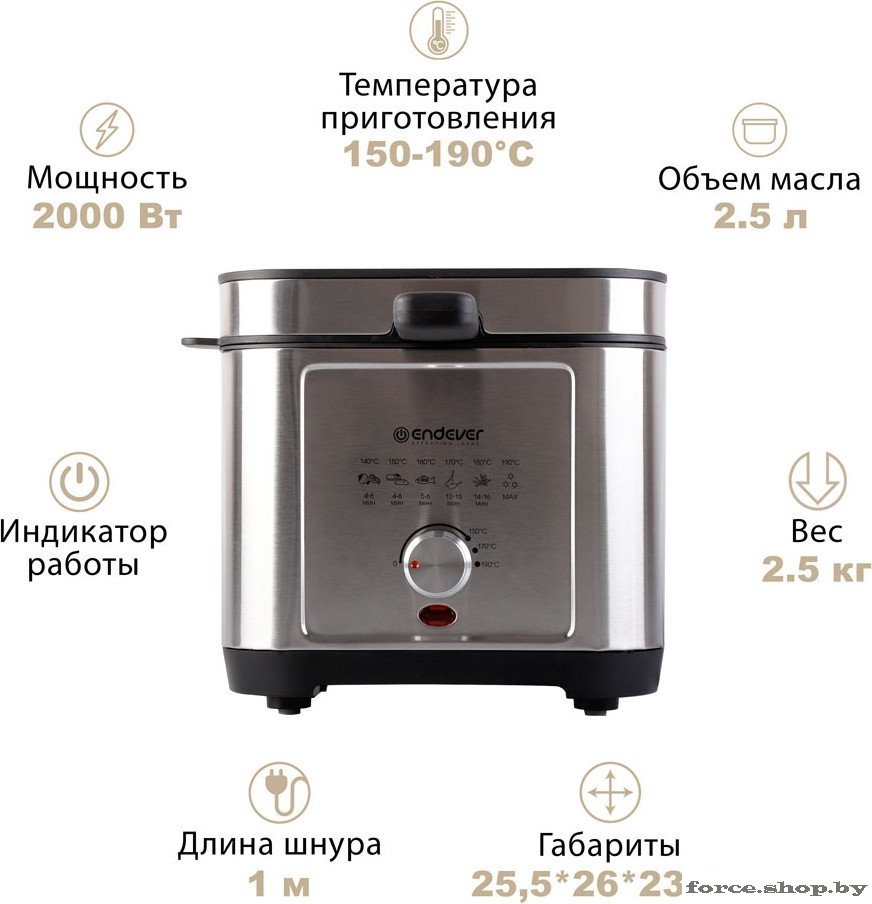 | Информация | - Фритюрница Endever FR-113 объединяет в себе высокую функциональность и элегантный дизайн. С мощностью 2000 Вт и корпусом из нержавеющей стали, она идеально подходит для быстрого и качественного приготовления разнообразных блюд.###BR######BR###- Благодаря возможности регулировки температуры, вы сможете легко подобрать оптимальный режим для каждого ингредиента. Съемная крышка и прозрачное окно позволяют наблюдать за процессом готовки, не открывая фритюрницу.###BR######BR###- Индикатор работы упрощает контроль за устройством, а в комплекте идет удобная корзина для фритюра с практичной ручкой. Антипригарное покрытие чаши делает уход за фритюрницей легким и быстрым.###BR######BR###- Защита от перегрева гарантирует безопасность использования. Фритюрница Endever Skyline FR-113 станет вашим незаменимым помощником на кухне, обеспечивая быстрое и качественное приготовление любимых блюд. |