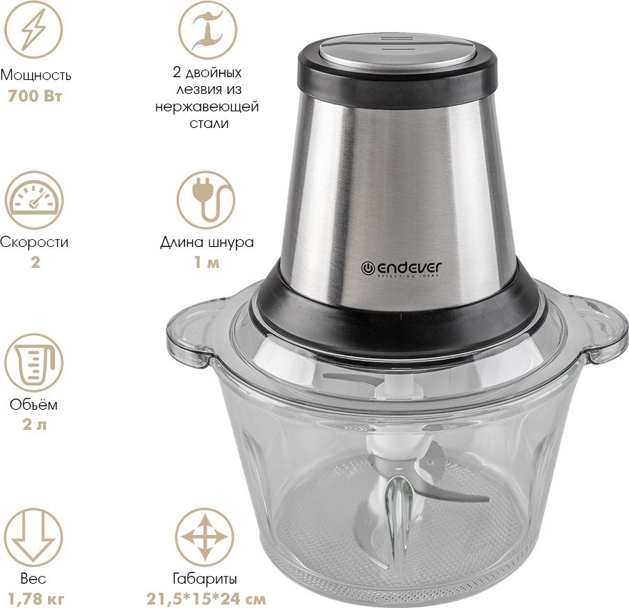 | Информация | - Новый измельчитель Endever Sigma-131 объединяет мощность, надежность и удобство, делая процесс приготовления еще проще и эффективнее. С мощностью 700 Вт и чашей объемом 2 литра, вы сможете быстро и легко измельчать разнообразные продукты. - Двойные лезвия и ручка из нержавеющей стали гарантируют отличную прочность и долговечность, позволяя без труда обрабатывать даже самые твердые ингредиенты. Высокопрочная чаша из ЭКО-стекла не только надежна, но и безопасна для использования с пищевыми продуктами. - Противоскользящая подставка обеспечивает стабильность и безопасность во время работы с измельчителем. Вы сможете наслаждаться простотой использования и уверенностью в надежности процесса. - Измельчитель Sigma-131 предлагает две скорости работы, что позволяет выбрать оптимальный режим для обработки различных продуктов. Благодаря герметичной защите от брызг, ваша кухня останется чистой и аккуратной. - Высокая производительность и многофункциональность этого измельчителя позволяют быстро справляться с нарезкой и измельчением фруктов, овощей, трав, мяса, рыбы, твердого сыра и других продуктов. Вы сможете готовить разнообразные блюда и наслаждаться их уникальным вкусом и текстурой. |