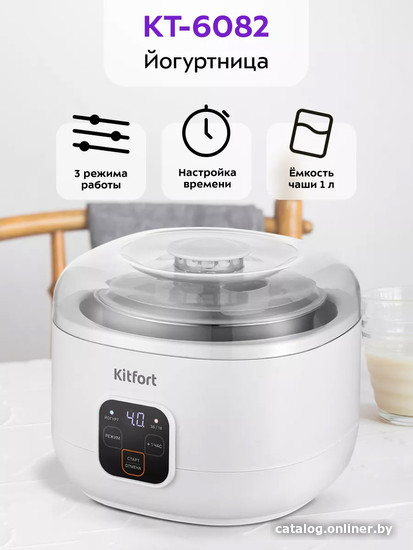 | Информация | ? Йогуртница КТ-6082 предназначена для приготовления вкусного и полезного домашнего йогурта, а также творога, питьевого йогурта или любого другого молочного продукта. В устройстве предусмотрено 3 режима, в каждом из которых можно настроить время работы. ? Готовить йогурт с КТ-6082 очень легко. Просто смешайте молоко и закваску в чаше, далее установите чашу в йогуртницу. Выберите режим приготовления, установите время и нажмите кнопку старта. Спустя 8 часов натуральный, полезный продукт будет готов! ? Режим «Йогурт» предназначен для приготовления йогурта. В режиме «36» вы сможете приготовить творог. По умолчанию установлено время 36 часов. С помощью режима «18» можно приготовить питьевой йогурт или другой молочный продукт за 18 часов. ? Йогуртница равномерно нагревает чашу с ингредиентами, поддерживая заданную температуру. Прибор укомплектован чашей из нержавеющей стали на 1 литр с пластиковой крышкой. Готовый йогурт можно хранить в холодильнике прямо в чаше. ? Крышку йогуртницы, чашу и крышку чаши мойте в тёплой воде с использованием средства для мытья посуды и мягкой губки. Корпус йогуртницы протирайте влажной и мягкой тканью. ? Йогуртница КТ-6082 очень компактная и выполнена в белом цвете, благодаря чему идеально впишется в интерьер кухни и будет радовать своих хозяев. ?? Таймер на режиме «Йогурт»: от 8 до 12 часов с шагом 1 час. Таймер на режиме «36»: от 36 до 42 часов с шагом 1 час. Таймер на режиме «18»: от 18 до 24 часов с шагом 1 час. |