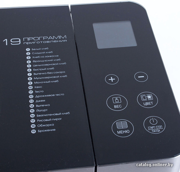 | Основные программы | безглютеновая выпечка, белый хлеб, варенье, кекс, сладкая выпечка, французский багет, цельнозерновой хлеб |