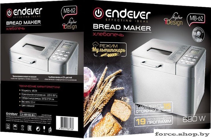 | Основные программы | безглютеновая выпечка, бездрожжевая выпечка, бородинский хлеб, варенье, десертная выпечка, йогурт, кекс, мультипекарь, пшеничный хлеб, сладкая выпечка, тушение, французский багет, цельнозерновой хлеб |