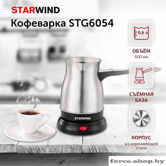 | Информация | ? Кофеварка Starwind STS6054 привлекает внимание своим уникальным внешним видом и простотой использования, а также легкостью ухода. ###BR###? Для приготовления ароматного напитка не нужно иметь специальных знаний, можно использовать любой молотый кофе по вашему вкусу. ###BR###? Компактные размеры делают эту турку идеальным выбором для любого пространства. ###BR###? Электрическая турка имеет мощность около 600 Вт и резервуар для готового напитка, а также емкость для заливки воды объемом 0,6 литра. ###BR###? Бытовой прибор выполнен в серебристом и черном цвете, корпус изготовлен из прочной нержавеющей стали. |