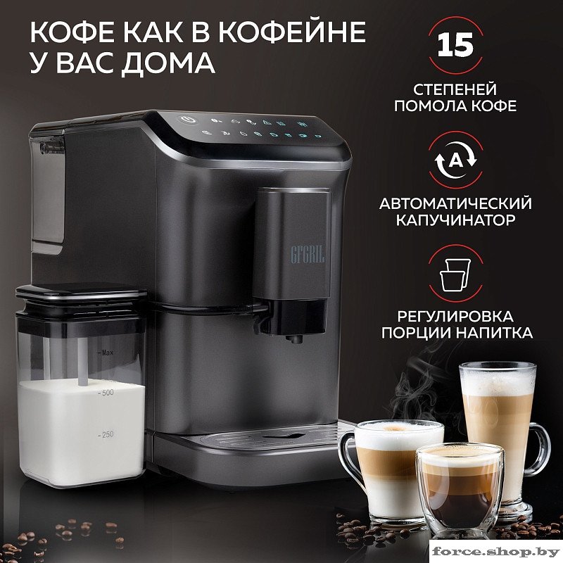 | Информация | - Кофемашина GFC-1000 приготовит Ваш любимый кофейный напиток быстро и просто: эспрессо, американо, латте или капучино. ###BR###- Мощная помпа с давлением 20 бар создаст кофе как в лучших кофейнях и обеспечит надежную работу аппарата. ###BR###- Автоматический капучинатор создаст воздушную молочную пенку, и может использоваться как отдельно, так и при приготовлении кофейных напитков. ###BR###- Встроенная кофемолка с 15 степенями помола кофе и возможностью регулировать объем порции воды. ###BR###- Регулируемый диспенсер и режимы самоочистки и очистки от накипи. ###BR###- Выполнена из долговечных и экологичных материалов, съемный поддон для сбора капель, контейнер для отработанных кофейных таблеток. ###BR###- Вместительные резервуары для зерен, воды и молока. ###BR###- Компактные размеры и стильный дизайн. |