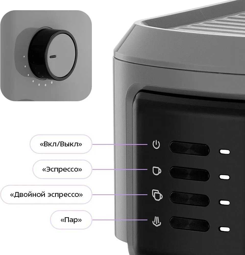 | Информация | - Рожковая кофеварка Kitfort KT-7523 станет вашим незаменимым помощником для приготовления ароматного эспрессо, капучино или латте. Благодаря встроенному стимеру, вы сможете легко создать воздушную молочную пенку, как в лучших кофейнях. Каждый глоток кофе будет приносить наслаждение! - Удобная панель управления предлагает режимы «Эспрессо» и «Двойной эспрессо», а также регулятор для подачи горячей воды или пара. Просто поверните регулятор, чтобы остановить подачу горячей воды, и наслаждайтесь процессом приготовления. - С помощью паровой трубки (стимера) вы сможете быстро и просто взбить холодное молоко в пышную пену. Всего через минуту вы получите идеальную текстуру для вашего любимого напитка. - Резервуар для воды объёмом 0,9 л легко снимается и наполняется в любом удобном месте. Крышка открывается, что позволяет заливать воду, не снимая резервуар, что делает процесс ещё более удобным. - Съёмный поддон упрощает уход за кофеваркой: просто выньте его, промойте и верните на место. Чистка не займёт много времени и сил! - Платформа для подогрева позволяет заранее прогреть рожок, фильтр и чашку, что улучшает качество вашего эспрессо. Она нагревается всего за 10-15 минут после включения. - Профессиональный подход к приготовлению кофе теперь доступен и дома: темпер для прессовки и долговечные фильтры с лазерными отверстиями обеспечат безупречный результат. С Kitfort KT-7523 вы сможете наслаждаться настоящим кофе каждый день! |