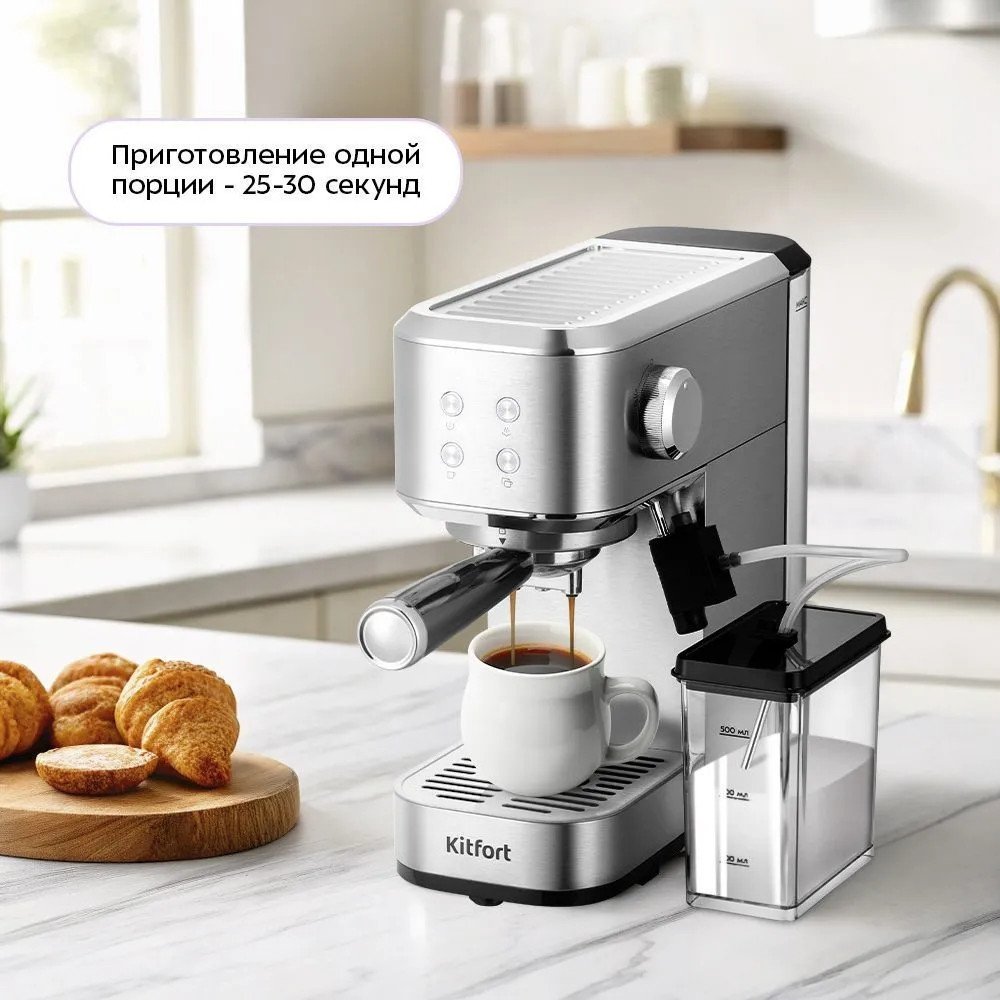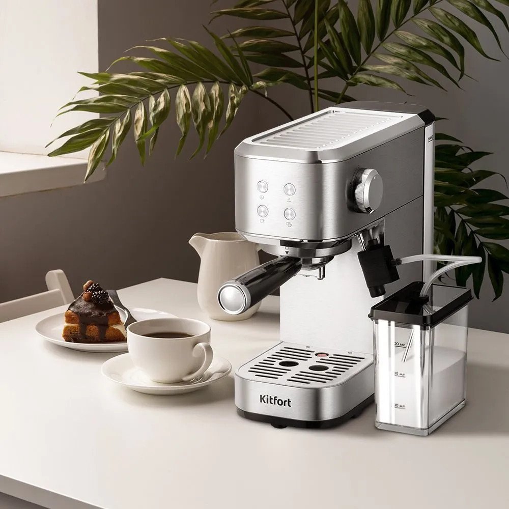 | Информация | - Для любителей настоящего кофе! Рожковая кофеварка КТ-7641 — идеальный инструмент для приготовления кофе. Она позволяет создавать разнообразные напитки: от эспрессо до капучино и латте. Особая технология приготовления позволяет сохранить все полезные свойства и тонкий аромат кофе. - Максимум вкуса в каждой чашке Вода из резервуара поступает в бойлер, где нагревается до температуры 92-95 °C. Под высоким давлением она проходит через молотый кофе, находящийся в рожке. Такой процесс позволяет извлечь из кофе максимум полезных и ароматических веществ. - Идеальный кофе каждый день Кофеварка имеет съёмный резервуар для воды и металлический рожок. Благодаря такому рожку напиток прогревается равномерно, позволяя достичь насыщенного вкуса и густой консистенции. В комплекте есть мерная ложка-темпер для удобства наполнения и утрамбовки. - Металлические фильтры для кофе Кофеварка оснащена металлическими фильтрами, не требующих замены. Для приготовления эспрессо используйте фильтр, рассчитанный на одну порцию (7 грамм), а для двойного эспрессо — фильтр с большой граммовкой (14 грамм). - Нежная молочная пенка Автоматический капучинатор кофеварки готовит пышную пенку для капучино или латте. Он состоит из резервуара для молока, трубки и механизма вспенивания. При подаче пара кофеварка взбивает молоко и наливает нежную пенку в чашку. - Простое управление Переключатель включает подачу горячей воды или пара для молочной пены. Нажмите кнопку «Пар» и поверните переключатель против часовой стрелки. Пар будет подаваться под давлением 15 бар. Для выключения поверните переключатель по часовой стрелке. - Чашки всегда под рукой! На верхней панели кофеварки можно разместить кружки для кофе, чтобы они всегда были под рукой. Кроме того, во время работы кофеварка выделяет тепло, которое можно использовать для подогрева и сушки ваших любимых чашек. |
