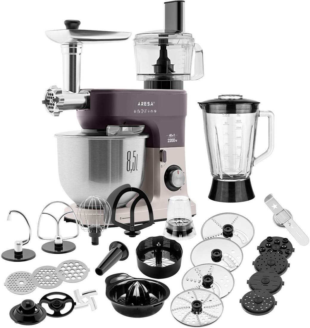 | Информация | ??Текст описания составлен при помощи искусственного интеллекта. - Кухонная машина Aresa AR-1710 с объемом чаши 8.5 л и материалом чаши из металла. - Имеет насадки для смешивания, измельчитель/терку и мясорубку. - Таймер на 4 минуты для удобства приготовления. - Дополнительно есть диск/насадка для терки и шинковки. - Функциональная машина с возможностью использования в качестве мясорубки, блендера, соковыжималки, цитрус-пресса, взбивания, смешивания, замешивания дрожжевого теста, измельчения, рубки, терки, шинковки, ломтерезки, помола круп и кофе. - Планетарное смешивание и регулировка скорости для точного приготовления. - В комплекте также имеется блендер объемом 1.5 л, насадка для теста и соковыжималка для цитрусовых. - Мощность 850 Вт (2200 Вт при блокировке вала) и импульсный режим для эффективной работы. |
