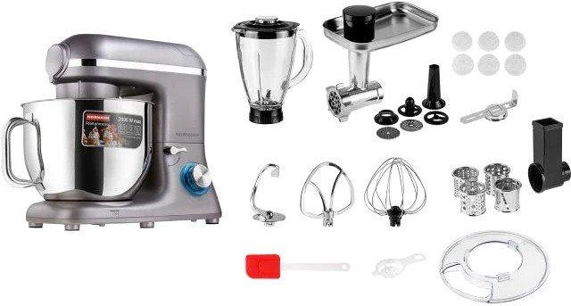 | Функции | мясорубка, блендер, взбивание, смешивание, замешивание дрожжевого теста, терка, шинковка, ломтерезка |