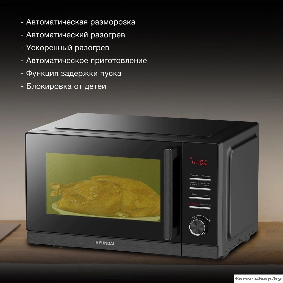 | Информация | - Быстро размораживайте продукты, легко разогревайте пищу и с удовольствием готовьте разнообразные блюда в микроволновой печи Hyundai HYM-D3012 с функцией автоповара. Модель обладает вместительной камерой на 25 л и поворотным столом диаметром 28,8 см. Можно подогреть суп для одной персоны или приготовить запеканку с мясом и овощами для всей семьи. У устройства оптимальная мощность – 800 Вт.###BR######BR###- Удобное электронное управление. Одним нажатием выбирайте нужную функцию – разморозку по времени или весу, регулировку мощности, включение автоповара, запуск таймера или настройку часов. Пользуйтесь функциями «СТАРТ/+30 сек.» и «СТОП/Отмена», чтобы сэкономить свое время. На светодиодном LED-дисплее отображается необходимая информация о приготовлении. Удобный поворотный регулятор поможет выбрать нужные значения времени, мощности и другие параметры. -5 уровней мощности. Настраивайте уровни мощности от 10% до 100% с шагом в 20 пунктов. Это позволит быстро разогреть еду или приготовить полноценное блюдо, не пересушив его. Снижайте мощность, чтобы деликатно растопить масло или шоколад.###BR######BR###- Автоповар на 8 программ. Удобный поворотный регулятор позволит выбрать нужные автоматические программы с заранее установленными временем и температурой. Быстро и легко запекайте картофель, мясо, рыбу и овощи, делайте пасту, попкорн, готовьте напитки или включайте автонагрев на максимальной мощности.###BR######BR###- Таймер до 95 минут. Установите необходимое время для разморозки продуктов или приготовления пищи. Используйте микроволновку для создания разнообразных блюд: филе индейки, медальонов из судака или трески, овощных гарниров, десертов – кексов, пудингов и других.###BR######BR###- Современный дизайн. Микроволновая печь HYM-D3012 представлена в стильной черной расцветке. Устройство отличается элегантным и лаконичным дизайном. Дверца открывается за удобную ручку, что делает модель надежной и простой в эксплуатации. Микроволновка прекрасно впишется в кухонный гарнитур в стиле минимализм или хай-тек. |