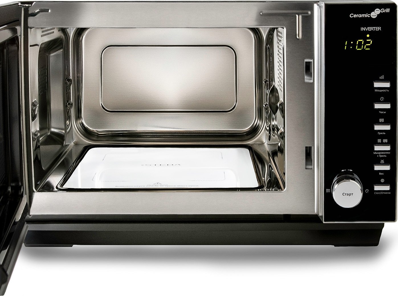 | Информация | - Инверторная микроволновая печь без вращающейся тарелки ###BR###- Камера из нержавеющей стали объёмом 25 л ###BR###- Мощность микроволн 900 Вт ###BR###- Мощность гриля 1000 Вт ###BR###- Серебристый цвет корпуса ###BR###- Зеркальная дверца ###BR###- Часы, таймер ###BR###- Замок от детей ###BR###- Автоматических программ 13 ###BR###- Комбинированных программ 6 |