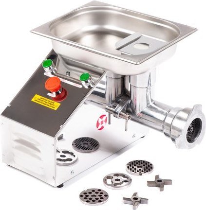 | Информация | Профессиональные промышленные мясорубки ТМ-12 и ТМ-12М предназначены для измельчения мяса и рыбы на фарш, повторного измельчения котлетной массы и набивки колбас на предприятиях общественного питания. Мясорубки удобны и просты в эксплуатации. Они оснащена, кроме функций «Стоп» и «Старт», функцией «Реверс», исключающей необходимость разборки мясорубки при попадании костей в горловину и наматывании жил на шнек. На всех мясорубках производства установлены бесшумные червячные редукторы. Они создают значительные усилия на ножах, что дает возможность перемалывать очень жёсткие продукты, включая хрящи и мелкие кости, а также позволяют агрегату работать более плавно. Отличительной особенностью мясорубок производства является возможность использования очень жёсткого сырья, которым изобилует отечественный рынок. Деформация агрегата исключена ввиду использования при его изготовления надёжного материала – массивной нержавеющей стали. Руки персонала защищены предохранителем, который блокирует свободный доступ к вращающемуся шнеку. Практическая производительность мясорубки зависит от скорости подачи оператором порезанного кусочками продукта к шнеку, сортности перерабатываемого мяса и качества заточки инструмента. Запчасти для промышленных мясорубок, в случае необходимости, менять очень просто. Мясорубки легко разбираются, после чего извлекаются определенные узлы, а вместо них устанавливаются новые. |