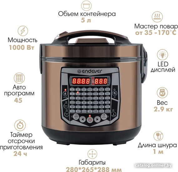 | Информация | ? Представляем вам умную мультиварку Endever Vita-126 с невероятным набором функций! Мощность 1000 Вт позволит вам готовить любимые блюда быстро и качественно. Объем чаши 5 литров и 45 автоматических программ делают приготовление разнообразных блюд легким и удобным. ? Электронное управление и функция "Мастер-повар" с широким диапазоном температур от 35 до 170 градусов позволят вам создавать настоящие кулинарные шедевры. Автоподогрев до 12 часов и отложенный старт до 24 часов позволят вам наслаждаться готовыми блюдами в нужное время. ? LED дисплей обеспечит удобство при управлении, а съемная чаша с антипригарным покрытием облегчит процесс чистки. Металлический корпус устойчив и надежен. Ручная регулировка времени приготовления позволит вам полностью контролировать процесс приготовления. ? Съемная чаша с антипригарным покрытием облегчает уход за устройством и делает его использование безопасным. Мультиварка сочетает в себе простоту и функциональность – идеальный выбор для тех, кто ценит свое время и заботится о здоровье своей семьи. ?? В комплекте с этой мультиваркой вы найдете черпак для супа, ложку для крупы, мерный стакан которые помогут вам точно дозировать ингредиенты при приготовлении. А контейнер-пароварка позволит вам приготовить блюда на пару, сохраняя все полезные вещества и вкус. ? Мультиварка Endever Vita-126 станет незаменимым помощником на вашей кухне, облегчив приготовление пищи и разнообразив ваше меню! |