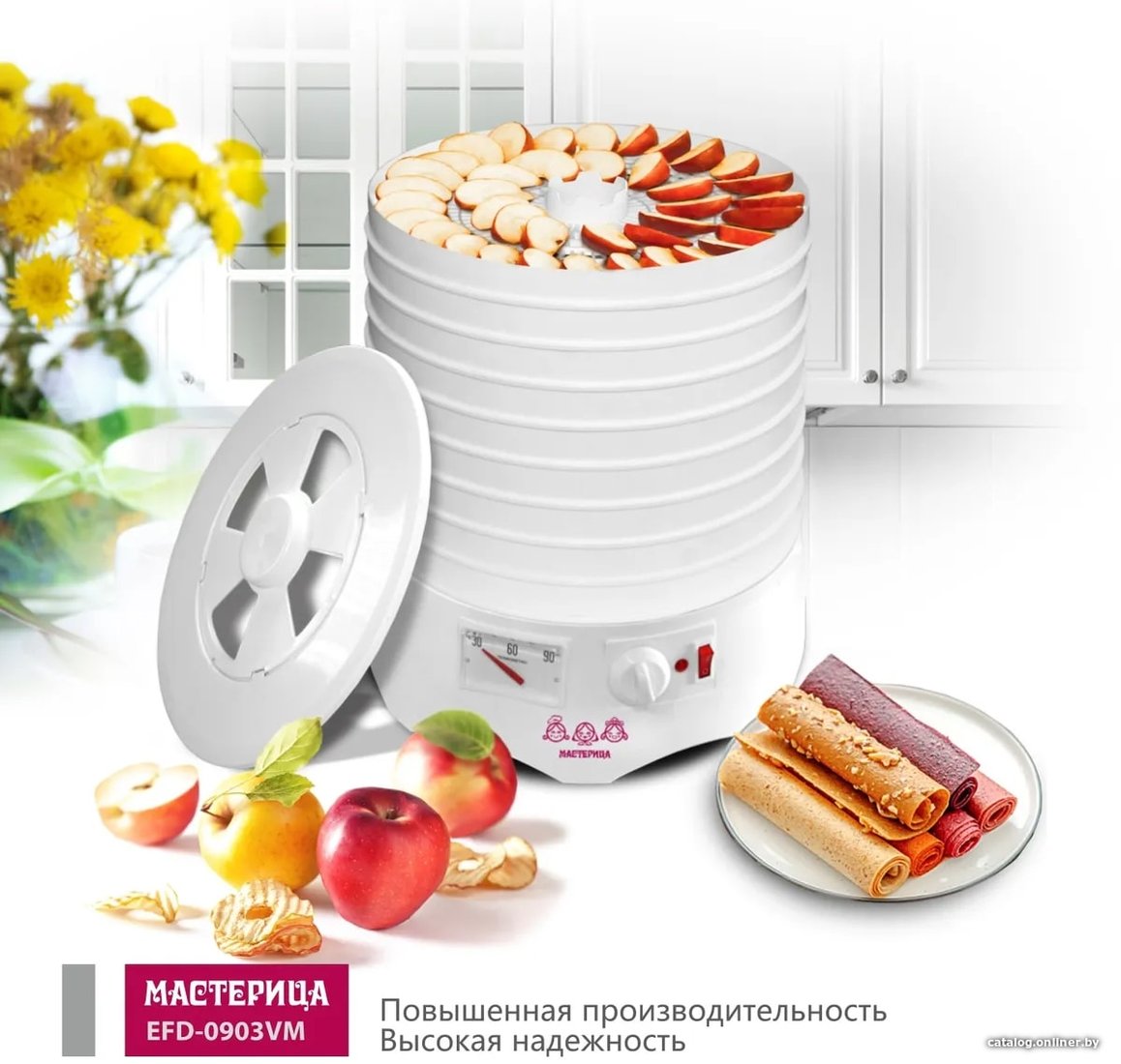 Сушилка для овощей и фруктов Мастерица EFD-0903VM (6 прозрачных поддонов + 3 белых поддона)