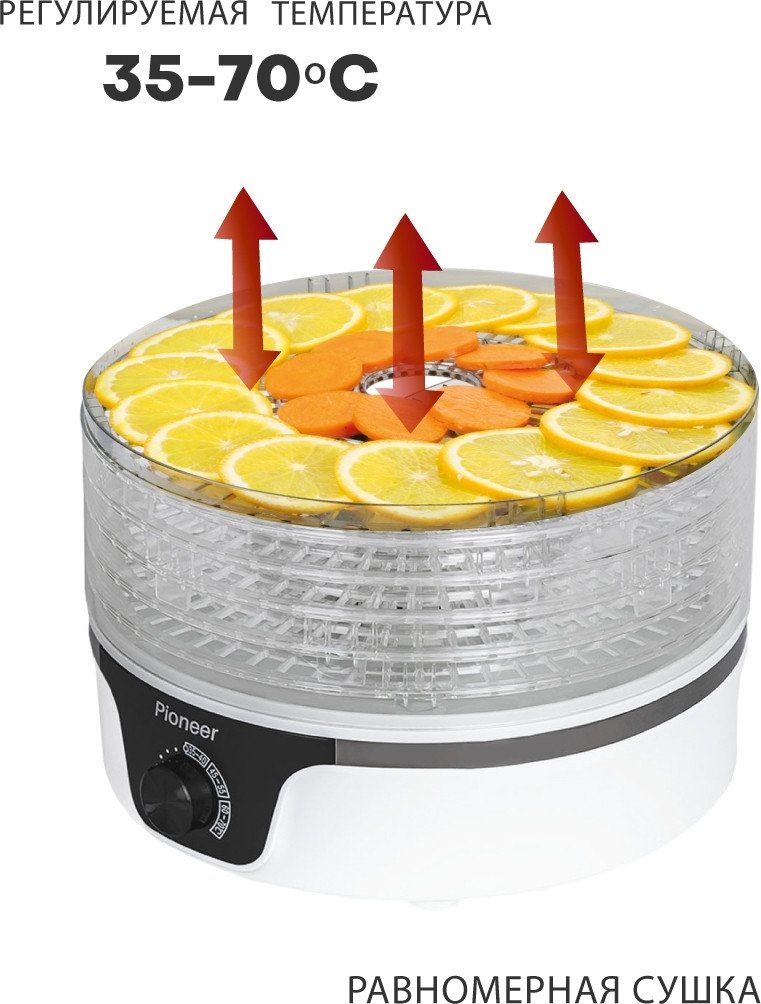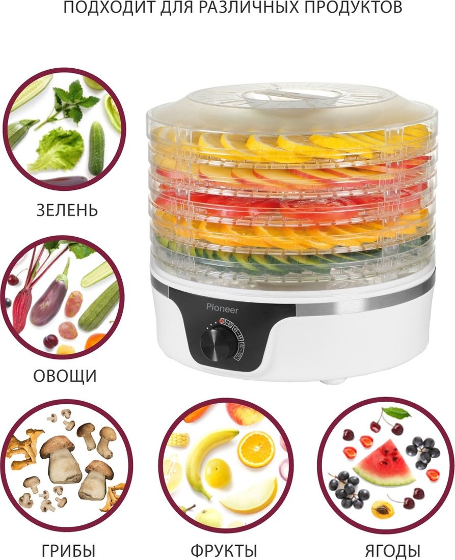 | Информация | ??Текст описания составлен при помощи искусственного интеллекта. - Сушилка для овощей и фруктов Pioneer FD105 — это идеальный помощник для тех, кто хочет сохранить свежесть и полезные свойства своих любимых продуктов. Благодаря мощному нагревательному элементу и конвективной системе сушки, вы сможете легко и быстро высушить фрукты, овощи, травы и даже грибы. - В комплекте с сушилкой вы получите 5 прозрачных поддонов с крышкой, которые обеспечивают удобство в использовании и позволяют контролировать процесс сушки. Механическое управление и регулируемый термостат позволяют настроить оптимальную температуру сушки в диапазоне от 35 до 70 °C, что делает процесс максимально эффективным. - Корпус сушилки выполнен из прочного пластика, что обеспечивает долговечность и легкость в уходе. Расстояние между уровнями в 25 мм позволяет сушить даже крупные кусочки продуктов, не беспокоясь о том, что они будут мешать друг другу. - Не забывайте следить за процессом сушки, чтобы достичь наилучших результатов и насладиться вкусом натуральных закусок! |