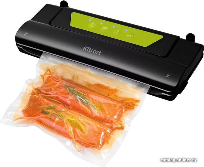 | Информация | Вакууматор Kitfort КТ-1528 - современный прибор, призванный увеличить сроки хранения пищевых продуктов. Продукты, упакованные под вакуумом, сохраняют свежесть и не портятся существенно дольше по сравнению с обычными условиями хранения. Открытый край пакета укладывается под крышку прибора, после чего вакууматор начинает выкачивать из него воздух. В результате образования вакуума пакет плотно обжимает содержимое. Как только воздух удалён, начинается запечатка открытой стороны пакета. «Авто» - кнопка для автоматической упаковки: вакууматор откачает воздух из пакета, а затем запечатает его. Отдельный режим «Запечатывание» - запечатает пакет без предварительной откачки воздуха. «Откачка» - откачивает воздух без запечатывания пакета. У КТ-1528 есть режимы для вакуумирования сухих и влажных продуктов с различным временем запечатывания. Влажные продукты могут намочить край пакета, поэтому время увеличено. Для надёжности можно запечатать пакет одинарным или двойным швом. У устройства можно активировать режим откачки воздуха из контейнеров. Вакуумирование происходит при помощи шланга, вставленного в фитинг вакууматора одним концом, а другим в фитинг крышки контейнера. Вы можете самостоятельно изготовить вакуумные пакеты из рулонной плёнки для вакууматора. Для этого запечатайте один край плёнки, используя режим «Пайка», тем самым сформировав дно пакета. Затем с помощью резака отрежьте пакет необходимой длины. Для обеспечения надежности при выкачивании воздуха, вакууматор плотно закрывается. Чтобы открыть устройство нажмите одновременно боковые кнопки устройства, которые закрепляют положение крышки при выкачивании воздуха. В комплектации с вакууматором идёт дополнительно шнур для откачки воздуха из контейнеров. Набор контейнеров для вакууматоров KT-1500-11 вы можете приобрести отдельно. Вакуумирование ускоряет засолку, маринование и мочение. В вакууме процесс обработки продуктов такими способами значительно ускоряется. Кроме того вакуумная упаковка останавливает развитие микробов и сохраняет аппетитный внешний вид продукта. Данная модель КТ-1528 легко впишется в любой интерьер благодаря разнообразной цветовой гамме, в которой представлено устройство. Создаваемое разрежение (максимум): 0.55 бар. Ширина шва: 2 мм. Длина шнура: 1.3 м. |