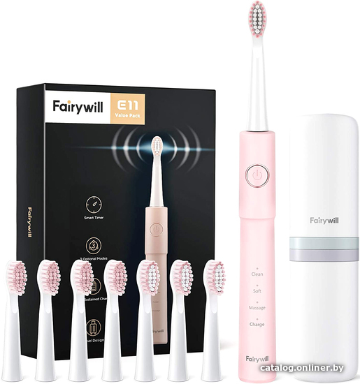 Электрическая зубная щетка Fairywill E11 (розовый, 8 насадок)