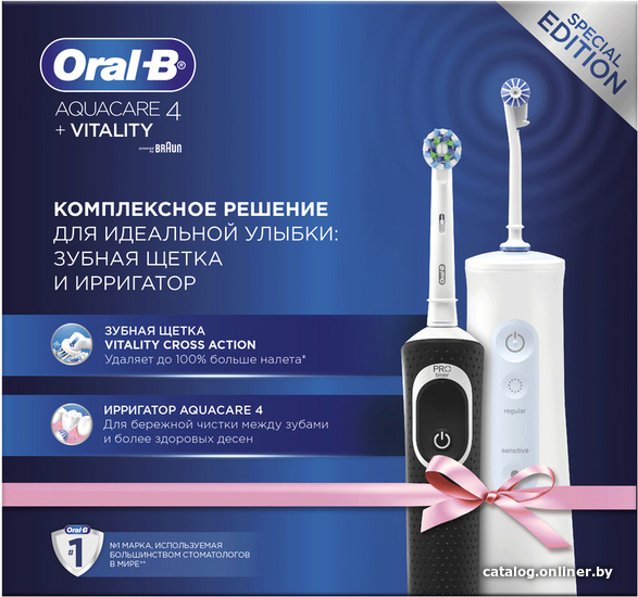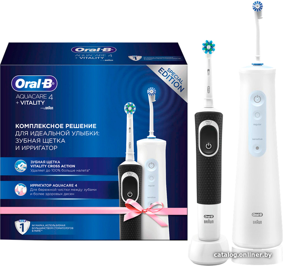Электрическая зубная щетка и ирригатор Oral-B Aquacare 4 MDH20.016.2 + Vitality Pro Cross Action D100.413.1