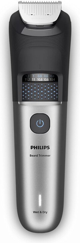 | Информация | Острые лезвия и минимум усилий Благодаря самозатачивающимся металлическим лезвиям, широкой области сбривания и технологии BeardSense вы сможете без лишних усилий получать желаемый и ровный результат. А инновационный отсек для сбора волос избавит вас от лишнего мусора во время процедуры. Для точного подравнивания бороды без лишних усилий Металлические лезвия Шаг насадки 0.2 мм Широкий триммер Отсек для сбора волос Время работы до 120 минут Максимальная точность, долговечность и эффективность Самозатачивающиеся металлические лезвия отличаются повышенной прочностью и обеспечивают максимальную точность подравнивания, оставаясь такими же острыми, как и в первый день, и не требуя смазывания. Кроме того, нержавеющие лезвия легко чистить. Точность для создания бороды вашей мечты Регулятор триммера позволяет выбрать одну из 40 доступных установок длины с шагом 0.2 мм, чтобы вы могли оформить свою бороду именно так, как хотите. Конструкция, захватывающая срезанные волоски Инновационный отсек для сбора волос захватывает до 80 % сбритых волосков — больше никакого беспорядка во время ухода за собой. Эффективная стрижка даже самой густой бороды Благодаря технологии BeardSense триммер сканирует густоту вашей бороды 125 раз в секунду, увеличивая мощность на соответствующих участках и обеспечивая оптимальные результаты. Эффективное и точное подравнивание для вашего идеального образа Усовершенствованный гребень Lift&Trim приподнимает прилегающие волоски к лезвиям для аккуратного и эффективного подравнивания во время каждого прохода. Точные линии и контуры для аккуратной бороды Металлический широкий триммер премиум-класса поможет придать бороде опрятный вид и создать четкие контуры. Еще более четкие контуры для идеального образа Узкая конструкция триммера для контуров обеспечивает максимальную точность при создании четких форм. Переходы для идеального результата Специальные гребни триммера позволяют создавать плавные переходы с обеих сторон лица, благодаря чему борода выглядит безупречно. Простая очистка для еще более удобного использования Этот триммер — 100 % моющийся прибор, поэтому вы можете просто сполоснуть его под струей воды. Теперь уход за собой станет еще проще. Дополнительный комфорт и контроль движений во время подравнивания Благодаря эргономичной ручке с элементом Fine Line 360° прибор удобно держать и использовать, наслаждаясь комфортом и контролем движений, необходимыми для создания идеального образа. Удобная зарядка и хранение Подставка обеспечивает удобную зарядку и хранение устройства — теперь оно всегда будет готово к следующему использованию. Стабильно высокая эффективность от начала и до конца Наш долговечный литиевый аккумулятор обеспечивает до 120 минут работы с быстрой 5-минутной зарядкой** для эффективной стрижки без перерывов. Контроль за состоянием аккумулятора Световой индикатор показывает состояние аккумулятора и сообщает о завершении зарядки. Благодаря ему вы всегда сможете заряжать устройство вовремя, чтобы не ждать перед следующим бритьем. Организация ухода за собой дома и в поездках Дорожный чехол позволяет держать устройство и все необходимые насадки в одном месте, обеспечивая аккуратное хранение приспособлений по уходу за собой как дома, так и в поездке. |