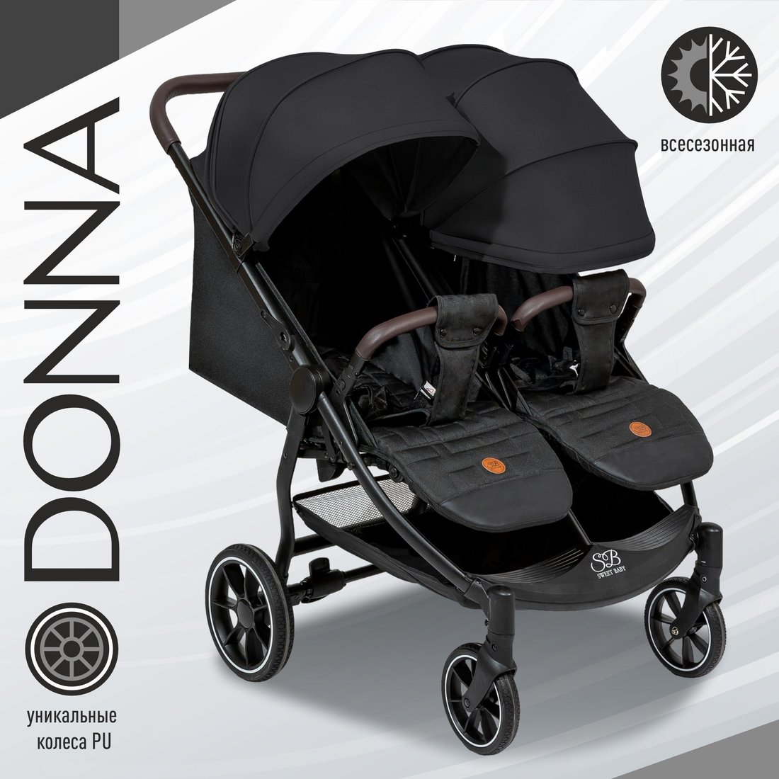 | Информация | - Коляска Donna — идеальный выбор для родителей двойни или близнецов, которая подходит для использования в любое время года. - Рама коляски оснащена двумя сиденьями с индивидуальными системами регулировки, что обеспечивает максимальный комфорт во время прогулок с двумя детьми. Три положения спинок с механической регулировкой позволяют вашим малышам находиться в удобном положении — от лежачего до сидячего. - Утепленные накидки для ножек и глубокий капюшон гарантируют комфортные прогулки при любых погодных условиях. Большие колеса из PU материала легко преодолевают неровности дороги, что делает каждую поездку приятной. - Пятиточечные ремни безопасности обеспечивают надежную защиту, а смотровое окошко на капоре позволяет вам следить за детьми во время перемещения. Регулируемая по высоте подножка в трех положениях добавляет удобства. - Родительская ручка из эко-кожи не только стильная, но и удобная в использовании. Коляска легко проходит в большинство дверных проемов благодаря ширине колесной базы всего 77 см. - Коляска Donna — ваш надежный спутник для комфортных и безопасных прогулок с вашими малышами! |
