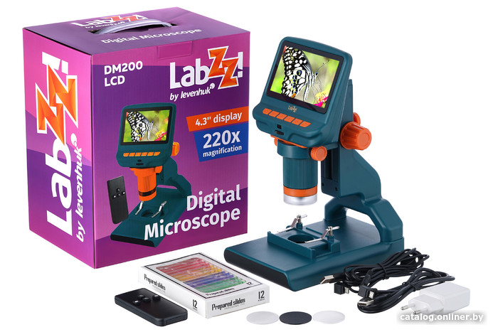 | Информация | ? Levenhuk LabZZ DM200 LCD - цифровой микроскоп для наблюдений, фотографирования и видеозаписи исследований. Подходит для изучения минералов, тканей, монет, электроники, механизмов, биологических образцов и насекомых. Подходит для детей с научным хобби. ? Имеет встроенный цветной ЖК-экран диагональю 4,3 дюйма. Можно подключить к компьютеру через USB и использовать программы захвата изображения. Оптическое увеличение от 17 до 55 крат, цифровое - от 17 до 220 крат. ? Комбинированная светодиодная подсветка с регулировкой яркости позволяет исследовать образцы любой степени прозрачности. Работает от сети или встроенного аккумулятора, что делает его мобильным. ? Фотографирование в качестве 12 Мпикс, запись видео в качестве Full HD. Запись на карту памяти (приобретается отдельно). В комплекте есть беспроводной пульт для управления фото- и видеофункциями. |