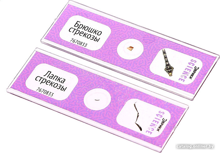 | Состав набора | В наборе 12 слайдов: - Крыло бабочки. - Лапка бабочки. - Крыло дрозофилы. - Крыло саранчи. - Лапка саранчи. - Крыло стрекозы. - Брюшко стрекозы. - Лапка стрекозы. - Икра креветки. - Крыло пчелы. - Лапка пчелы. - Брюшко саранчи. |