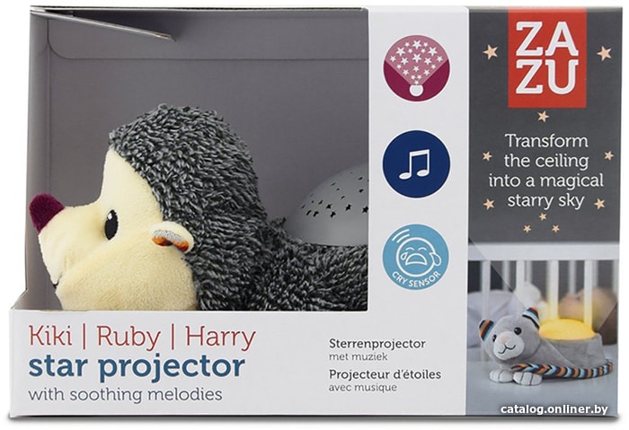 | Особенности | проекции 4-х разных цветовГарри автоматически включится, если ваш ребёнок заплачетзвук сердцебиения, успокаивающие мелодии и звуки природы.режим автоотключения |