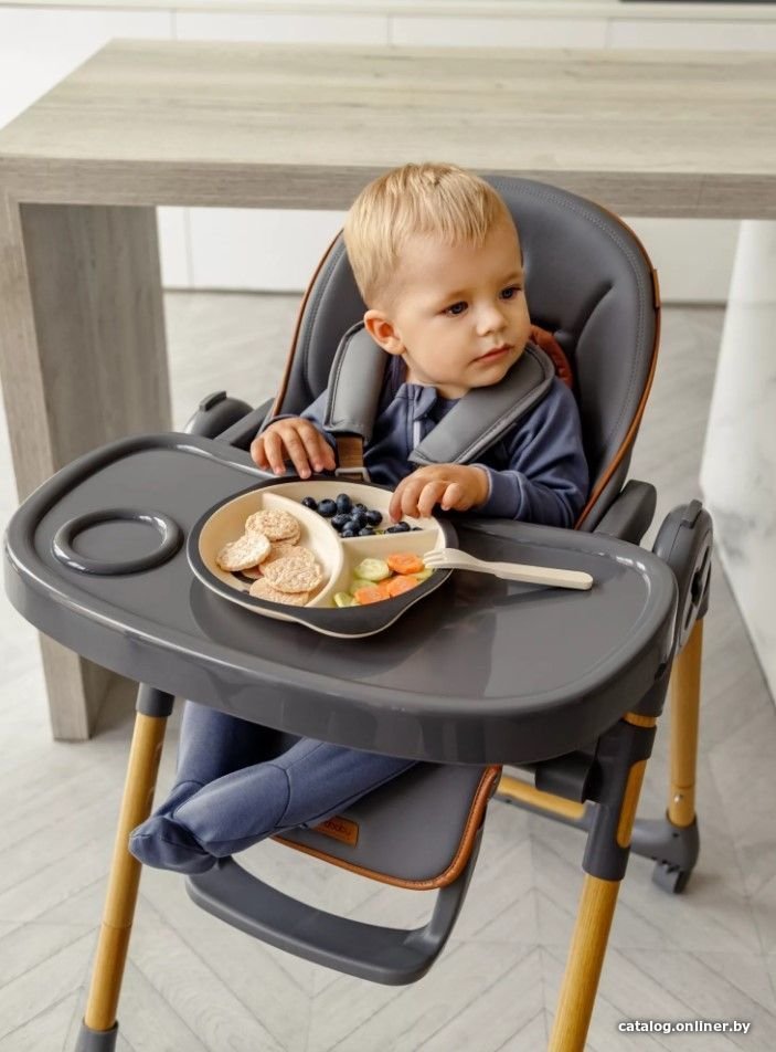 | Информация | Компактный раскладной стульчик для кормления Elegant — это не только незаменимый помощник во время кормления вашего ребенка, но и стильный аксессуар, который прекрасно впишется в любой интерьер. Ноги стула имеют уникальный дизайн и выкрашены «под дерево», а сиденье изготовлено из мягкой эко кожи. Одной из главных особенностей этого стульчика является его функциональность. Спинка сиденья может быть отрегулирована в пять различных положений наклона, вплоть до положения «шезлонг», что позволяет использовать стул с самого рождения ребенка. Благодаря регулировке по высоте в шесть положений, вы сможете настроить стул шезлонг для кормления детей на оптимальный уровень для вашего малыша. А регулируемая подставка для ног в трех положениях (вверх/вниз) обеспечит комфорт и удобство вашему малышу. Чтобы обеспечить безопасность вашего ребенка, стул для кормления младенцев оснащен 5-ти точечным ремнем, который надежно фиксирует его во время кормления. Бесшумные колесики со стопером позволяют легко перемещать стул для новорожде нных по комнате, не нарушая покой вашего ребенка. Дополнительным преимуществом Elegant является съемный и регулируемый столик. Верхняя часть столика предназначена для приема пищи, а также имеет круглое отделение под бутылочку или поильник. После еды верхний поднос можно легко снять и помыть. Нижняя часть столика предназначена для игр, лепки, рисования и других развлечений вашего ребенка. При сборке стула поднос вешается на заднюю часть ног. Кроме того, стульчик оснащен мягким, комфортным хлопковым вкладышем из 100% хлопка, который позволяет коже малыша дышать. Съемный чехол из эко кожи, устойчивый к загрязнениям и влаге, легко протирается и моется, что облегчает уход за стульчиком. Еще одним преимуществом Elegant является его компактная сборка, благодаря которой он займет минимум места при хранении. Это особенно удобно, если у вас ограниченное пространство или вы часто путешествуете с ребенком. Детский стульчик для кормления ребенка на колесах Elegant — это идеальный помощник для каждой мамы. Он не только обеспечивает комфорт и безопасность вашему ребенку во время кормления, но и станет хорошим дополнением к вашему интерьеру. Будь то подарок на рождение малыша, день рождения, Новый год или 8 марта, этот стульчик будет радовать и вас, и вашего ребенка. |