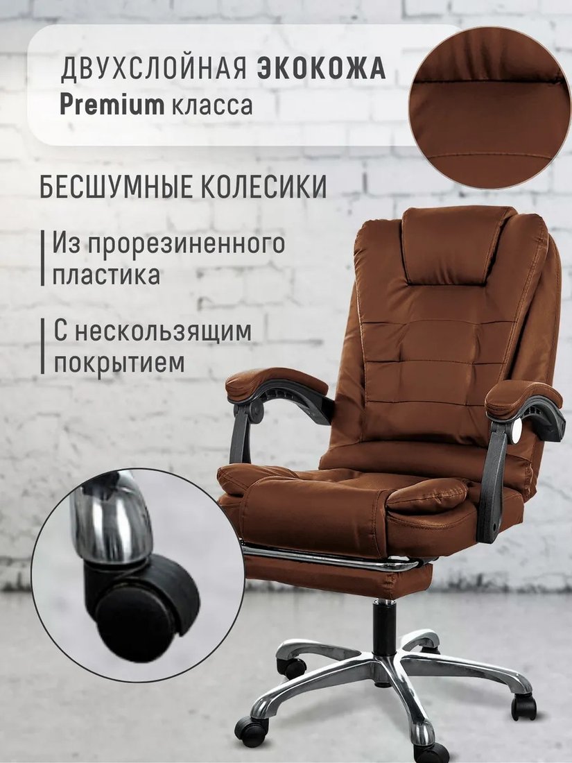 | Информация | Компьютерное кресло B&F идеально подходит для офиса, руководителя или домашнего использования. - Обивка сиденья и спинки выполнена из высококачественной двухслойной эко кожи. - Эргономичная спинка с поясничным подпором обеспечивает комфорт в течение рабочего дня. - Мягкие подлокотники снимают нагрузку с плечевого пояса при работе за компьютером. - Кресло оснащено подставкой для ног, откидывающейся спинкой и вибромассажем. - Крестовина из стальной конструкции выдерживает нагрузку до 120 кг. - Надежный механизм откидывания спинки позволяет регулировать угол наклона от 90 до 135 градусов. |