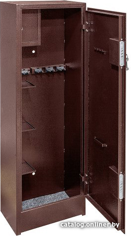 | Информация | Предназначен для хранения охотничьего, спортивного, травматического оружия, холодного оружия (охотничьи ножи), а также боеприпасов. Конструкция модели предусматривает использование с максимальной эффективностью всего внутреннего пространства. Шкаф "Гарант" T-SG-210-1 обеспечивает сохранность оружия при попытке несанкционированного вскрытия легким механическим инструментом. Сварная конструкция корпуса изготовлена из стали. Корпус шкафа покрыт полимерной краской (Антик медный) фирмы NEOTEC. Толщина корпуса не менее 2мм. Внутри шкаф оснащен запираемым отделением для боеприпасов (трейзер), тремя съемными полками, 5 держателями стволов. Пол шкафа закрыт ковриком, изготовленным из материала «Ковролин». На задней стенке корпуса расположены 2 отверстия (диаметр – 17 мм) для крепления шкафа. |