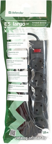 Сетевой фильтр Defender ES largo 1.8 (черный)