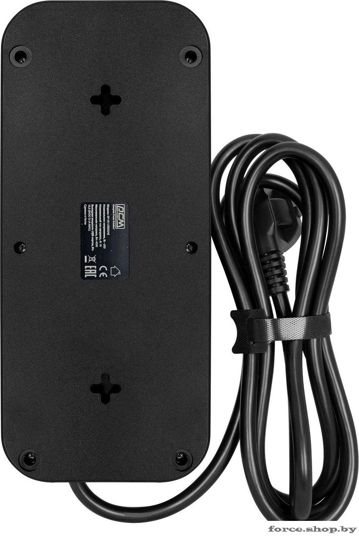 Сетевой фильтр Powercom SP-08 USB03AB (1.8 м, 8 розеток, черный)