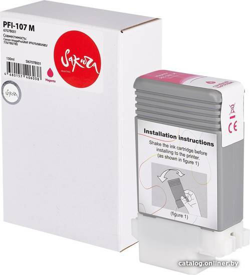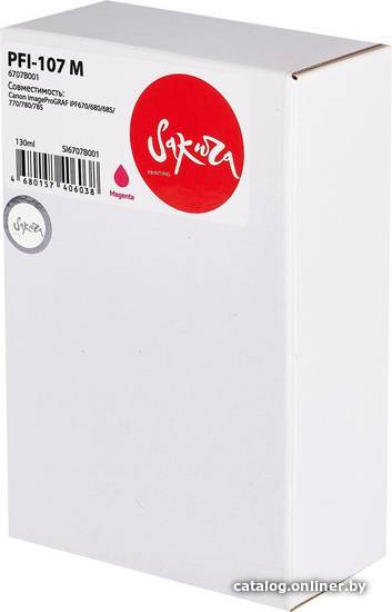 | Информация | Струйный картридж Sakura 6707B001 ( PFI-107 M) для Canon imageProGRAF iPF670/680/685/770/780/785, водорастворимый тип чернил, пурпурный, 130 мл. |